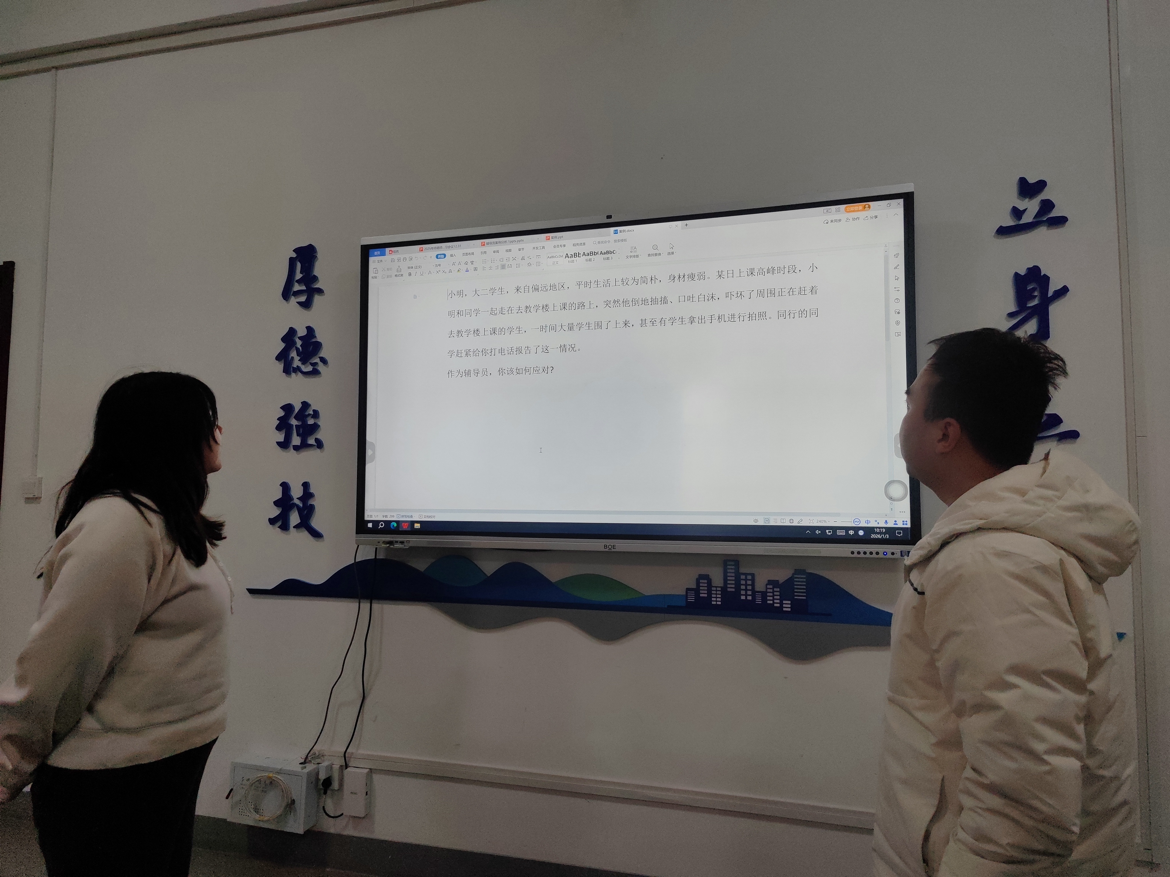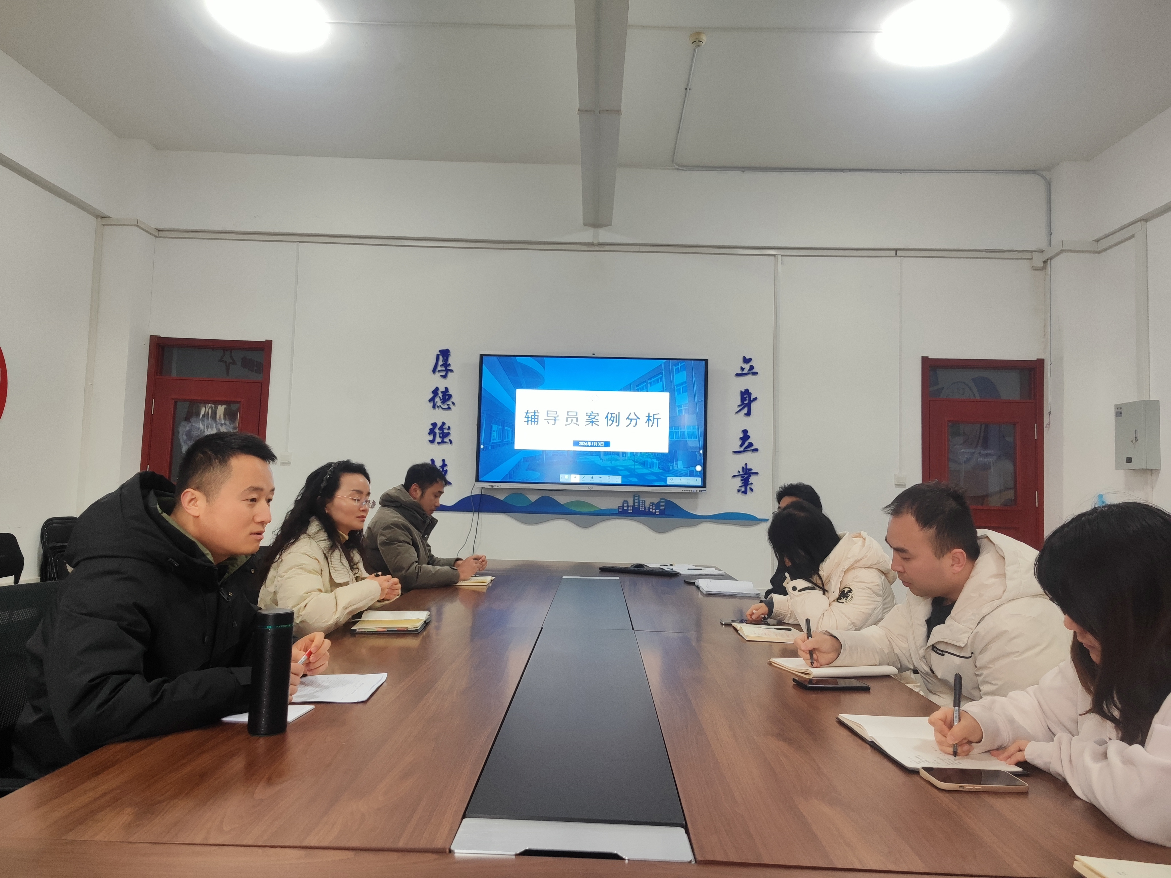 据悉,2026年1月3日,党总支书记薛媛丽、副院长田川、学工办主任周川力与全体专职辅导员齐聚匠心楼二楼会议室,以校级辅导员训练营备赛为核心开展集中打磨工作。现场聚焦赛事核心环节,围绕理论知识储备、案例研讨思路、谈心谈话技巧等关键内容深度研讨,领导班子精准指导备赛方向、破解实操难题,辅导员们互通育人经验、开展模拟演练,在精益求精的打磨中凝聚团队合力。此次集中备赛既是对辅导员队伍专业能力的实战淬炼,更彰显了学院以赛促学、以赛促建,推动辅导员队伍专业化职业化建设的坚定决心。